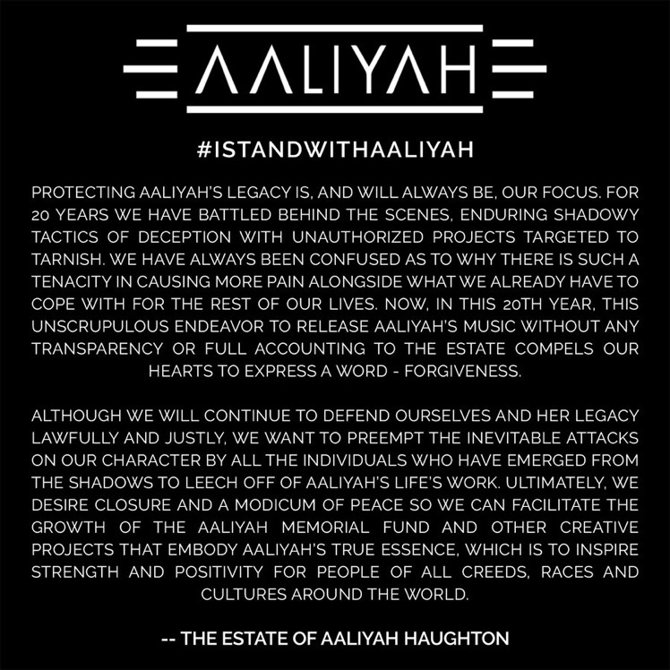 As the family has spoken, I humbly respect their wishes in protecting Aaliyah’s legacy, hopefully shortly in the near future; both parties can amend differences and agree on what would be best-releasing music for her fans that can forever hear her angelic voice on a playlist through streaming. Aaliyah will always be in our memories as time goes by; she’s truly a trendsetter in-game and will always be known as Baby Girl. Continue to rest peacefully.